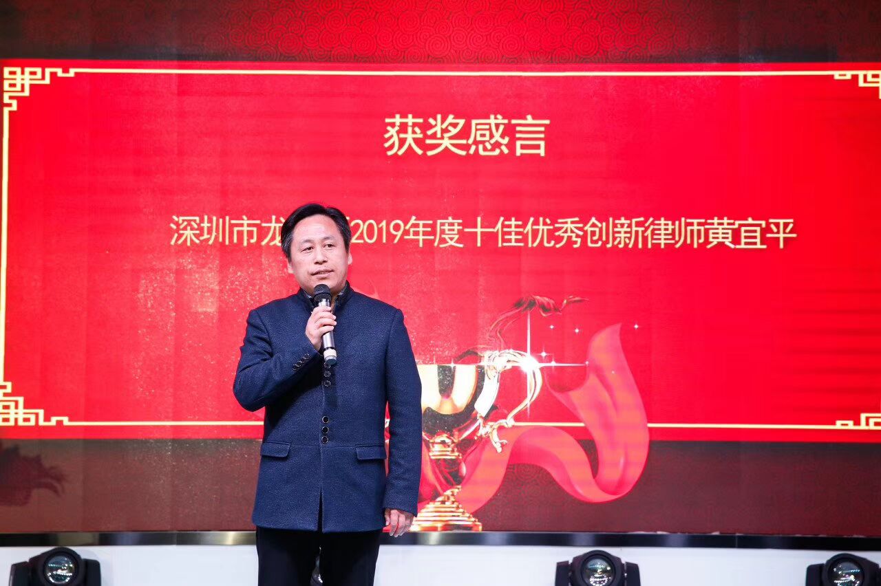 2020年1月5日,黄宜平律师被司法局评为十佳优秀创新律师,主持人要求发表五分钟获奖感言。以下是发言摘要: